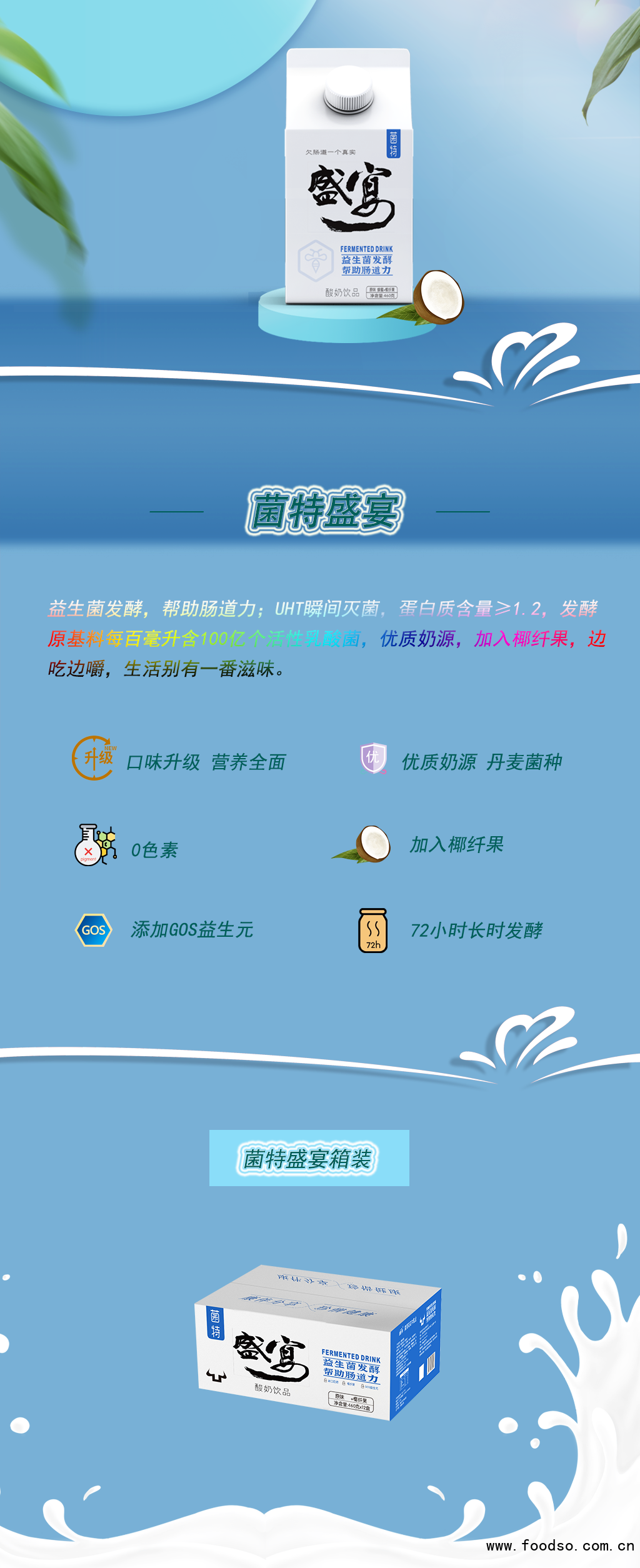 益生菌發(fā)酵,幫助腸道力;UHT瞬間滅菌,蛋白質(zhì)含量≥1.2,發(fā)酵原基料每百毫升含100億個(gè)活性乳酸菌,優(yōu)質(zhì)奶源,加入椰纖果,邊吃邊嚼,生活別有一番滋味。 產(chǎn)品名稱:原味菌特盛宴 產(chǎn)品規(guī)格:460g*12瓶;保質(zhì)期:6個(gè)月