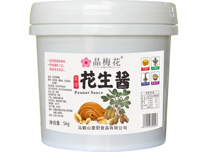 花生醬,是花生油提取前的產(chǎn)物。花生醬的色澤為黃褐色,質(zhì)地細(xì)膩,味美,具有花生固有的濃郁香氣,不發(fā)霉,不生蟲。一般用作拌面條、饅頭、面包或涼拌菜等的調(diào)味品,也是作甜餅、甜包子等餡心配料。